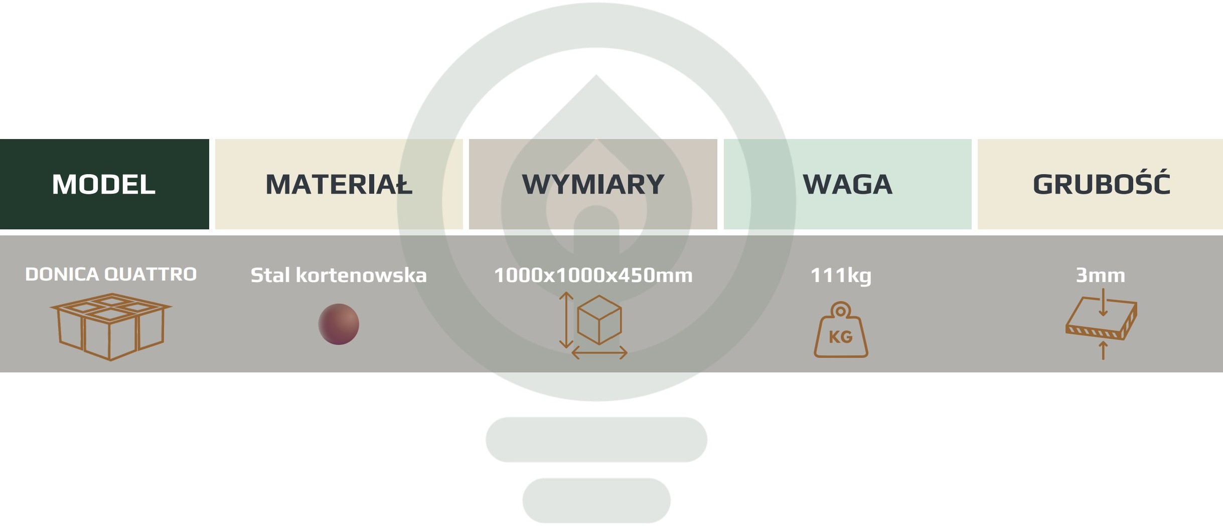 ✔ Naturalna patyna – donica nie jest zardzewiała przy zakupie; unikalna powłoka tworzy się samoistnie pod wpływem czynników atmosferycznych.
