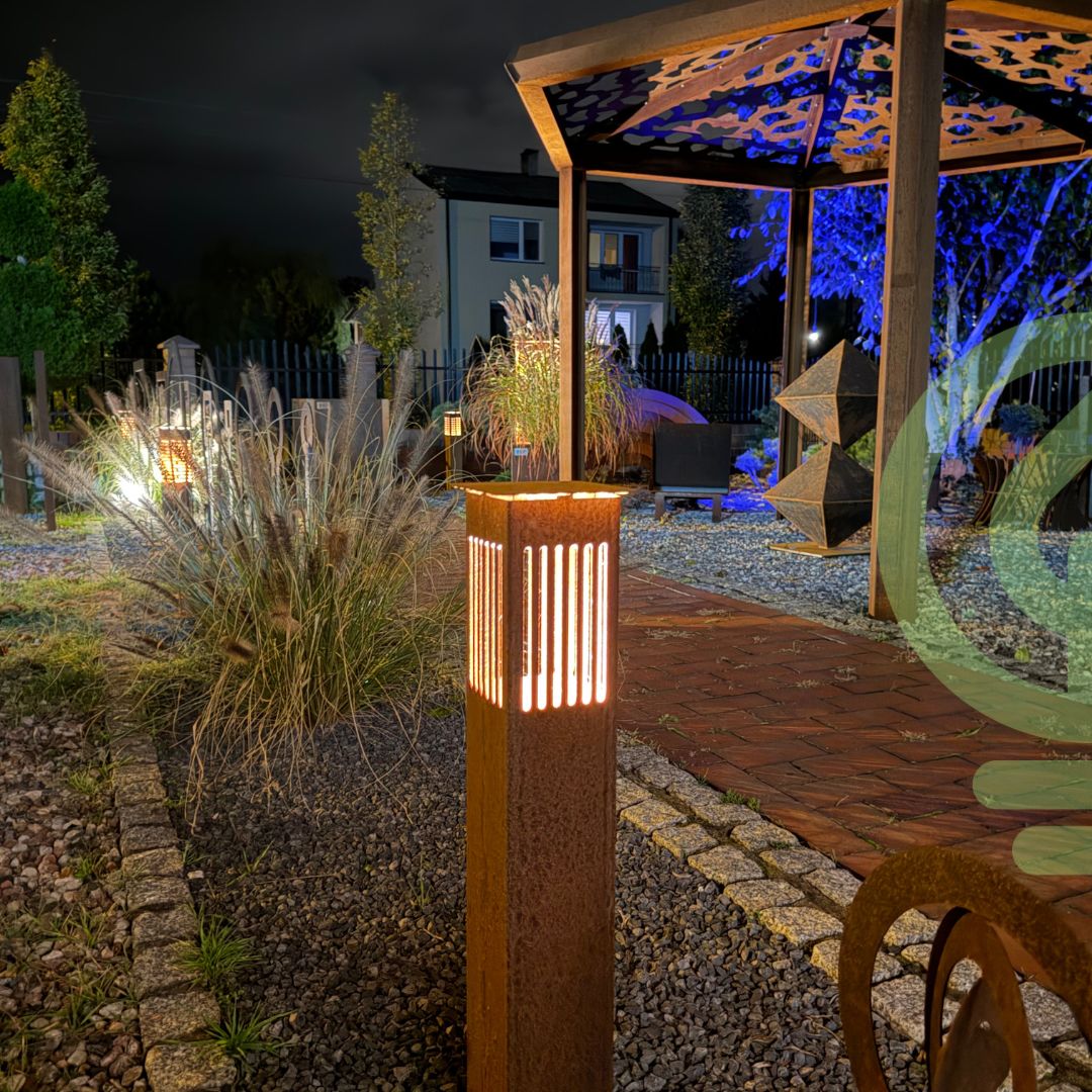 Korten i światło to połączenie, które podkreśla charakter ogrodu, wydobywa jego strukturę i tworzy atmosferę pełną ciepła oraz nowoczesnej elegancji.